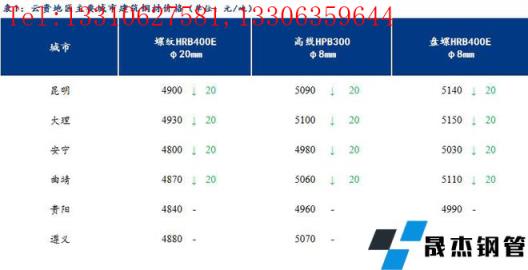 【今日價格】從云貴主要城市建筑厚壁無縫鋼管價格來看,今日云南建筑厚壁無縫鋼管市場價格下跌20元/噸,貴州建筑厚壁無縫鋼管市場價格持穩。
