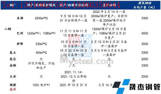 2021年為完成新疆粗鋼產(chǎn)量限產(chǎn)目標(biāo)和應(yīng)對冬季市場需求大幅減量的市場環(huán)境,新疆主要建筑厚壁無縫鋼管生產(chǎn)企業(yè)在2021年11月-12月均執(zhí)行不同程度的減限產(chǎn)措施。據(jù)統(tǒng)計(jì),2021年底新疆主要無縫厚壁鋼管廠家中僅八鋼(本部)、昆侖鋼鐵、金特鋼鐵和哈密大安處于在產(chǎn)狀態(tài),各無縫厚壁鋼管廠家日均產(chǎn)量維持在700-2500噸左右,八鋼巴州與伊鋼基地、昆玉鋼鐵和閩新鋼鐵則完全處于停產(chǎn)狀態(tài),停產(chǎn)時間長達(dá)3.5-4.5個月。跨入2022年之后,金特鋼鐵產(chǎn)量有所抬升,但由于高爐鐵水產(chǎn)量不穩(wěn)定,日均建筑厚壁無縫鋼管產(chǎn)量在2000-3500噸之間浮動,而其他在產(chǎn)無縫厚壁鋼管廠家受季節(jié)性淡季影響依舊處于不飽和生產(chǎn)狀態(tài)。