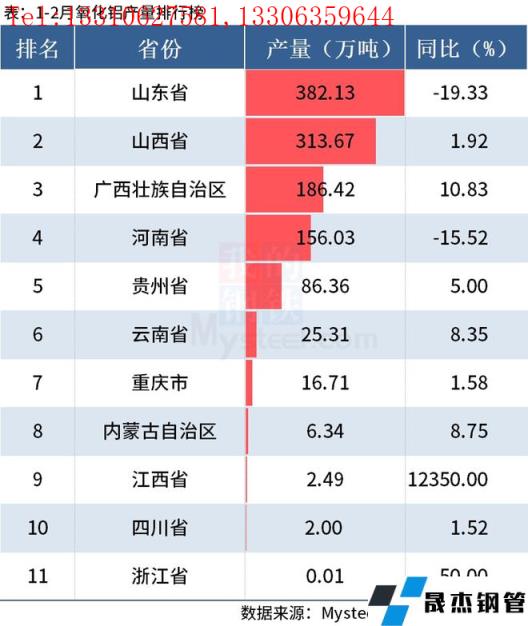 國家統計局數據顯示,2022年1-2月,中國氧化鋁產量1177.5萬噸,同比下降7.3%。其中,山東和河南氧化鋁產量分別同比下降19.33%和15.52%,廣西氧化鋁產量同比增長10.83%。