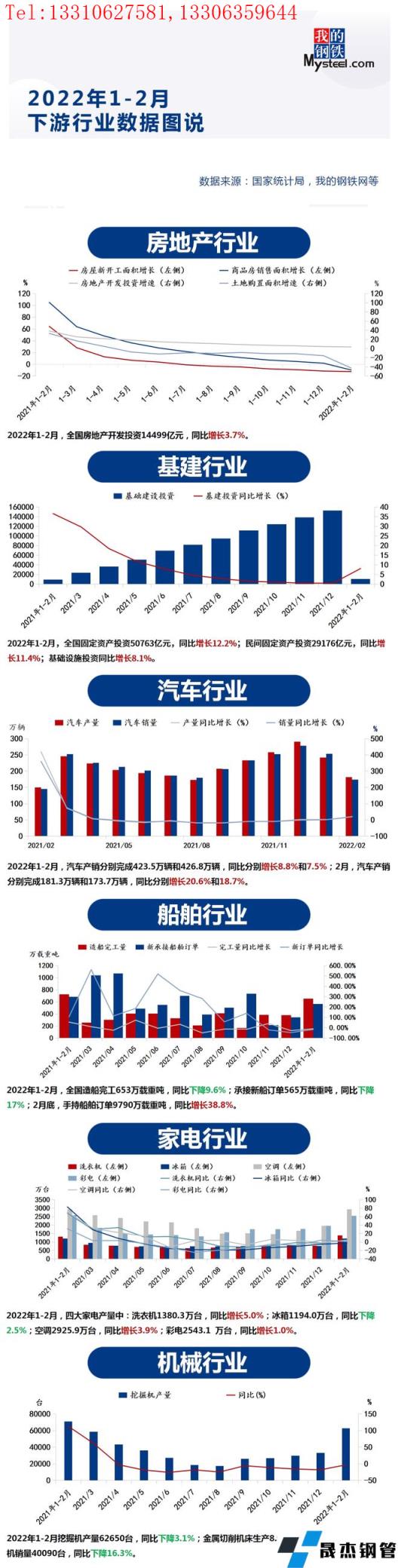 匯總了2022年1-2月部分下游用鋼行業(yè)的運行情況。