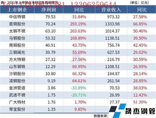 免責聲明:本網站(山東聊城晟杰無縫鋼管廠m.centurybiz.cn)刊載的“14家上市鋼企2021年實現凈利超410億元”等均源于網絡,版權歸原作者所有,且僅代表原作者觀點,本文所載信息僅供參考。轉載僅為學習與交流之目的,如無意中侵犯您的合法權益,請及時聯系刪除。本網站刊登此篇文章并不意味著本站贊同其觀點或證實其內容的真實性,我們不對其科學性、嚴肅性等作任何形式的保證。如果侵犯了您的版權,請盡快聯系我們予以撤銷,謝謝合作!