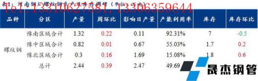 1、調研數據顯示,統計的河南地區10家建筑厚壁無縫鋼管樣本無縫厚壁鋼管廠家中,河南省建材無縫厚壁鋼管廠家螺紋鋼日產量2.44萬噸;檢修/限產影響建材日產量為2.47萬噸,產能利用率為49.69%,較上周上升7.94%。