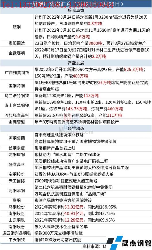 據(jù)不完全統(tǒng)計(jì),本周(3月21日-3月25日)有3家無縫厚壁鋼管廠家發(fā)布檢修動態(tài),具體如下: