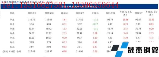 表6:全國(guó)主要城市工角槽價(jià)格匯總(2022-4.29-2022-5.6)