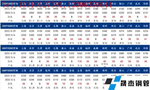 表5:全國(guó)主要城市H型鋼價(jià)格匯總(2022-4.29-2022-5.6)
