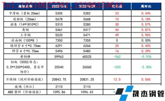截止2022年5月6日,各原材料當(dāng)日即時(shí)價(jià)格以及價(jià)格周環(huán)比情況如下: