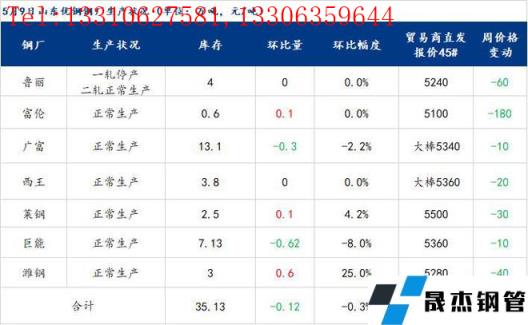 山東優特無縫厚壁鋼管廠家庫存35.13萬噸,環比減少0.12萬噸,降幅0.34%,同比增加16.31萬噸,增幅86.66%。生產方面:魯麗一軋停產,二軋正常生產;臨沂江泉停產。
