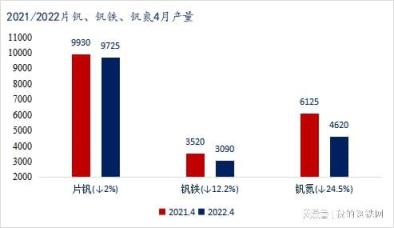 2022年4月片釩產量相比2021年同比下降2%;釩鐵同比下降12.2%;釩氮合金同比下降24.5%。兩年相比片釩產量變動不大,釩氮合金及釩鐵產量下降明顯,其原因在于4月合金企業受到上下游雙向擠壓,利潤單薄甚至虧損,從而影響了4月開工率,進入5月,合金企業依舊面臨倒掛問題,不排除開工率會進一步收縮。