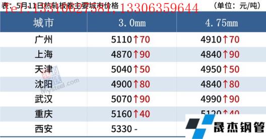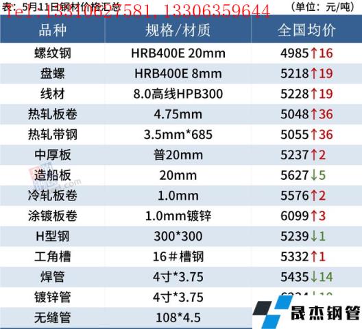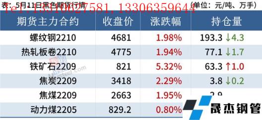 熱軋板卷:5月11日,全國(guó)24個(gè)主要城市4.75mm熱軋板卷均價(jià)5048元/噸,較上個(gè)交易日上漲36元/噸。現(xiàn)貨市場(chǎng)早盤報(bào)價(jià)回漲,市場(chǎng)成交尚可,盤中期卷持續(xù)上漲,市場(chǎng)價(jià)格跟漲,漲后成交表現(xiàn)一般,整體觀望情緒濃厚。總體來看,前期盤面大幅下跌,導(dǎo)致了市場(chǎng)需求明顯減少,無縫厚壁鋼管廠家利潤(rùn)接近虧損線,在盤面反彈回漲之后,市場(chǎng)情緒有所提振,前期部分延遲需求逐步釋放,商家壓力有所減輕。預(yù)計(jì)12日全國(guó)熱軋板卷或?qū)⑵珡?qiáng)運(yùn)行為主。