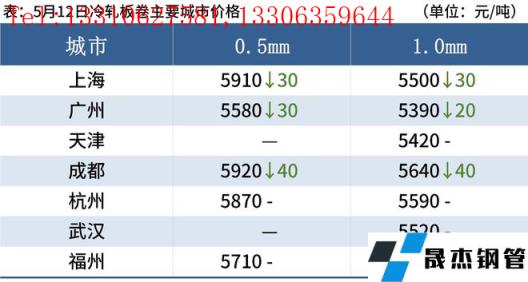 冷軋板卷:5月12日,全國24個主要城市1.0mm冷卷均價(jià)5569元/噸,較上個交易日下跌7元/噸。今日黑色系期貨盤面呈高開低走,現(xiàn)貨市場報(bào)價(jià)混亂,部分商家報(bào)價(jià)以穩(wěn)為主,今日成交表現(xiàn)偏差。心態(tài)方面,南方近期進(jìn)入汛期,市場需求或?qū)⒂兴鶞螅碳倚膽B(tài)多謹(jǐn)慎,當(dāng)下操作以出貨成交為主。庫存方面,據(jù)不完全統(tǒng)計(jì),本周冷軋無縫厚壁鋼管廠家?guī)齑?3.05萬噸,周環(huán)比減少1.08萬噸,社會庫存136.81萬噸,周環(huán)比減少2.60萬噸,周消費(fèi)量83.81萬噸,環(huán)比增加0.50萬噸。綜合來看,故預(yù)計(jì)13日國內(nèi)冷軋板卷價(jià)格或?qū)⒄鹗幤踹\(yùn)行。