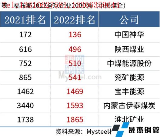免責(zé)聲明:本網(wǎng)站(山東聊城晟杰無縫鋼管廠m.centurybiz.cn)刊載的“中國7家煤企上榜福布斯2022全球企業(yè)2000強”等均源于網(wǎng)絡(luò),版權(quán)歸原作者所有,且僅代表原作者觀點,本文所載信息僅供參考。轉(zhuǎn)載僅為學(xué)習(xí)與交流之目的,如無意中侵犯您的合法權(quán)益,請及時聯(lián)系刪除。本網(wǎng)站刊登此篇文章并不意味著本站贊同其觀點或證實其內(nèi)容的真實性,我們不對其科學(xué)性、嚴(yán)肅性等作任何形式的保證。如果侵犯了您的版權(quán),請盡快聯(lián)系我們予以撤銷,謝謝合作!