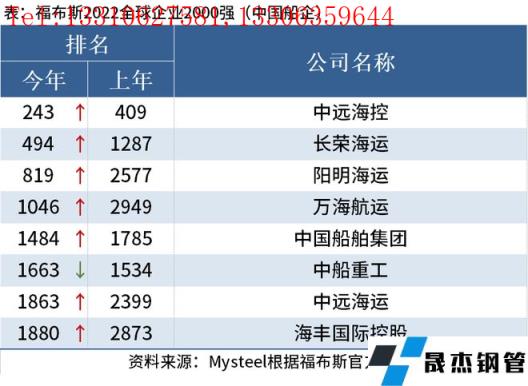 免責聲明:本網站(山東聊城晟杰無縫鋼管廠m.centurybiz.cn)刊載的“:中國8家船企上榜福布斯2022全球企業2000強”等均源于網絡,版權歸原作者所有,且僅代表原作者觀點,本文所載信息僅供參考。轉載僅為學習與交流之目的,如無意中侵犯您的合法權益,請及時聯系刪除。本網站刊登此篇文章并不意味著本站贊同其觀點或證實其內容的真實性,我們不對其科學性、嚴肅性等作任何形式的保證。如果侵犯了您的版權,請盡快聯系我們予以撤銷,謝謝合作!