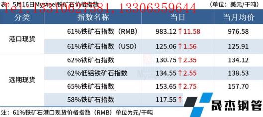 ◎5月16日,全國主港鐵礦石成交68.50萬噸,環比減26.7%;237家主流貿易商建材成交17.33萬噸,環比增11%。