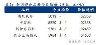 今日全國(guó)部分品種均價(jià)趨弱,其中全國(guó)熱軋板卷均價(jià)平穩(wěn),中厚板下跌4元/噸。