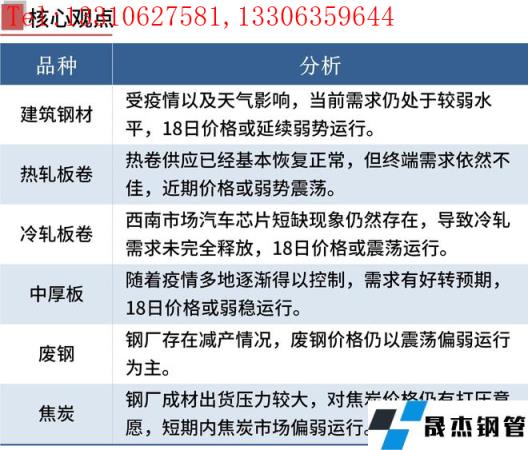 建筑厚壁無縫鋼管:5月17日,全國31個主要城市20mm三級抗震螺紋鋼均價4914元/噸,較上個交易日下跌17元/噸。從成交方面來看,早盤成交清淡,不溫不火,午后隨著期貨走弱,現(xiàn)貨跟跌,全天成交偏弱。短期來看,受疫情以及天氣影響,當(dāng)前需求仍處于較弱水平,總體成交清淡,預(yù)計18日國內(nèi)建筑厚壁無縫鋼管價格延續(xù)弱勢運(yùn)行態(tài)勢。