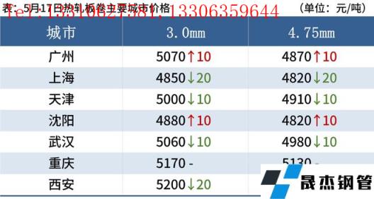 熱軋板卷:5月17日,全國24個主要城市4.75mm熱軋板卷均價5013元/噸,較上個交易日持平。現(xiàn)貨市場基本處于觀望狀態(tài),不急于拿貨,市場整體成交情況較弱,盤面全日震蕩運(yùn)行,午后部分市場有小幅下跌。供需角度來看,近期熱卷供應(yīng)已經(jīng)基本恢復(fù)正常,需求方面受盤面觸底反彈影響,部分投機(jī)商戶小批量備貨,但終端需求依然不佳,雖然前期部分延遲需求逐步釋放,但同比依然處于低位。綜合來看,預(yù)計近期全國熱軋板卷價格弱勢震蕩運(yùn)行為主。