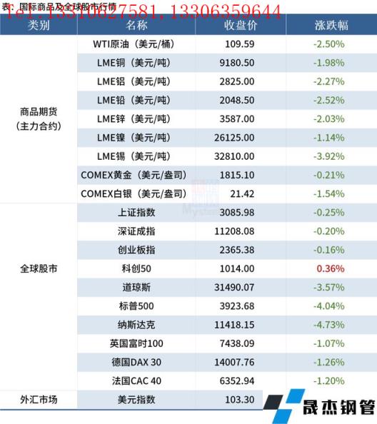 免責聲明:本網站(山東聊城晟杰無縫鋼管廠m.centurybiz.cn)刊載的“2022年05月19日早讀:無縫鋼管廠家虧損面積擴大,全球大宗商品價格重挫”等均源于網絡,版權歸原作者所有,且僅代表原作者觀點,本文所載信息僅供參考。轉載僅為學習與交流之目的,如無意中侵犯您的合法權益,請及時聯系刪除。本網站刊登此篇文章并不意味著本站贊同其觀點或證實其內容的真實性,我們不對其科學性、嚴肅性等作任何形式的保證。如果侵犯了您的版權,請盡快聯系我們予以撤銷,謝謝合作!
