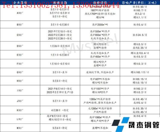 江蘇無縫厚壁鋼管廠家本周影響產(chǎn)量小幅增加,共計(jì)13家無縫厚壁鋼管廠家非正常生產(chǎn),較上周檢修停產(chǎn)鋼企數(shù)量持平,目前鐵水影響產(chǎn)量較上周減少0.3萬噸 /日,粗鋼影響產(chǎn)量較上周持平 ,成材影響產(chǎn)量減少0.24萬噸 /日。目前廢鋼資源緊缺,短期難以緩解,大部分電弧爐廠利潤(rùn)出現(xiàn)虧損,厚壁無縫鋼管價(jià)格如若繼續(xù)下跌,后期將觸發(fā)電弧爐產(chǎn)量縮減。具體情況及各主要品種日均影響產(chǎn)量(單位:萬噸)詳見下表: