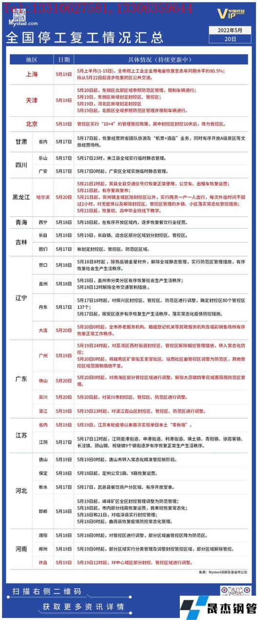 免責(zé)聲明:本網(wǎng)站(山東聊城晟杰無縫鋼管廠m.centurybiz.cn)刊載的“疫情影響丨全國停工復(fù)工情況匯總(5月20日)”等均源于網(wǎng)絡(luò),版權(quán)歸原作者所有,且僅代表原作者觀點(diǎn),本文所載信息僅供參考。轉(zhuǎn)載僅為學(xué)習(xí)與交流之目的,如無意中侵犯您的合法權(quán)益,請及時聯(lián)系刪除。本網(wǎng)站刊登此篇文章并不意味著本站贊同其觀點(diǎn)或證實(shí)其內(nèi)容的真實(shí)性,我們不對其科學(xué)性、嚴(yán)肅性等作任何形式的保證。如果侵犯了您的版權(quán),請盡快聯(lián)系我們予以撤銷,謝謝合作!