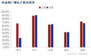 貴州區(qū)域:因虧損加重,多數(shù)無(wú)縫厚壁鋼管廠家停產(chǎn),產(chǎn)量明顯下降,螺紋鋼產(chǎn)能利用率26.8%,環(huán)比下降40.2%;開(kāi)工率14.29%,環(huán)比下降57.14%;周產(chǎn)量3.2萬(wàn)噸,環(huán)比下降4.8萬(wàn)噸。