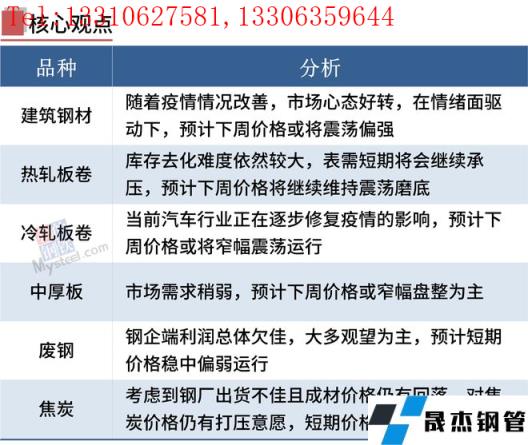 宏觀面,今日央行宣布5年期LPR下調(diào),也意味著個人住房貸款利率最低可達首套房4.25%,利好房地產(chǎn)市場。產(chǎn)業(yè)面,調(diào)研85家獨立電弧爐無縫厚壁鋼管廠家平均虧損86元/噸,本周電爐廠減產(chǎn)力度明顯加大,高爐廠鐵水產(chǎn)量變化不大。本周鋼市成交量大起大落,體現(xiàn)需求不穩(wěn)定,市場信心不足。短期鋼價漲跌反復(fù),處于震蕩筑底階段,隨著國內(nèi)疫情防控形勢進一步好轉(zhuǎn),預(yù)計國內(nèi)經(jīng)濟逐步復(fù)蘇,鋼市供需壓力逐步緩解,中期來看有望呈現(xiàn)震蕩反彈行情。