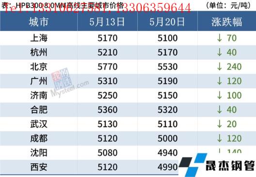 據監測,截至5月20日,全國主要城市20mm三級抗震螺紋鋼均價4849元/噸,較5月13日下跌107元/噸;8.0mmHPB300高線均價5101/噸,較5月7日下跌104元/噸。