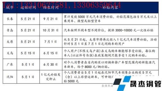 隨之,在5月份,全國多地都推出了因地制宜的購車優惠政策,包括汽車消費補貼、增加購車指標、汽車消費券等。這也進一步幫助消費者增強了汽車購買能力,拉動市場消費,從而推動動汽車產業和零部件供應企業的快速復蘇。筆者再此做了部分城市補貼政策的整理。