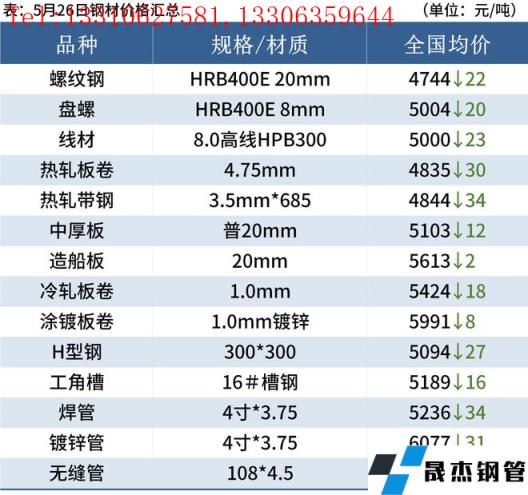 建筑厚壁無縫鋼管:5月26日,全國31個主要城市20mm三級抗震螺紋鋼均價4744元/噸,較上個交易日下跌22元/噸。受現(xiàn)貨持續(xù)回落,本周無縫厚壁鋼管廠家減產(chǎn)范圍擴(kuò)大,螺紋鋼產(chǎn)量小幅下降,廠庫小幅上升,但社庫持續(xù)下降,表觀消費小幅回落。短期來看,盡管近期利好政策層出不窮,但政策落地執(zhí)行仍需時日。目前市場情緒依然偏空,短期仍然需要進(jìn)一步提振市場消費信心及投資信心。因此預(yù)計27日國內(nèi)建筑厚壁無縫鋼管價格或?qū)⒗^續(xù)窄幅趨弱調(diào)整為主。