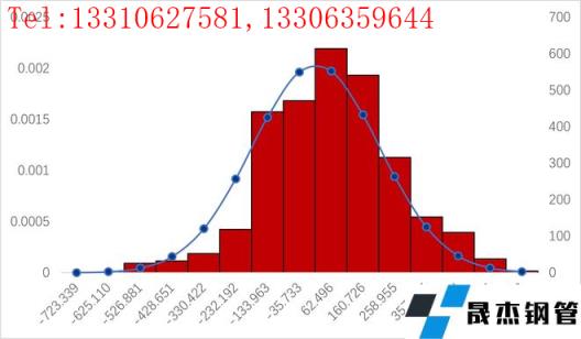 圖3:2009年來(lái)現(xiàn)貨市場(chǎng)熱卷和螺紋鋼價(jià)格差值概率分布圖