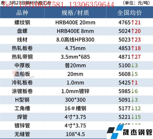 建筑厚壁無(wú)縫鋼管:5月27日,全國(guó)31個(gè)主要城市20mm三級(jí)抗震螺紋鋼均價(jià)4765元/噸,較上個(gè)交易日漲21元/噸。短期來(lái)看,受期螺大幅上漲,市場(chǎng)悲觀情緒有所修復(fù),出貨有所好轉(zhuǎn)。短期投資消費(fèi)信心不足導(dǎo)致市場(chǎng)供需處于雙弱的格局,當(dāng)前市場(chǎng)整體消費(fèi)恢復(fù)情況仍需觀察。因此預(yù)計(jì)下周國(guó)內(nèi)建筑厚壁無(wú)縫鋼管價(jià)格或?qū)⒗^續(xù)小幅上漲為主。