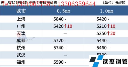 冷軋板卷:5月27日,全國(guó)24個(gè)主要城市1.0mm冷卷均價(jià)5425元/噸,較上個(gè)交易日上漲1元/噸。黑色系期貨盤面止跌反彈,市場(chǎng)信心稍有提振,釋放部分投機(jī)需求,多數(shù)商家以出貨回籠資金操作為主,成交稍有好轉(zhuǎn)。據(jù)商家反饋,當(dāng)前下游制造業(yè)都在緩慢復(fù)蘇狀態(tài),其接單一般,采購(gòu)心態(tài)也較為謹(jǐn)慎,未見(jiàn)大規(guī)模補(bǔ)庫(kù)采購(gòu)的跡象。就下周市場(chǎng)而言,臨近月底,考慮到市場(chǎng)商家資金和庫(kù)存壓力均較大,預(yù)計(jì)下周全國(guó)市場(chǎng)冷軋板卷價(jià)格或?qū)⒄鹗庍\(yùn)行。