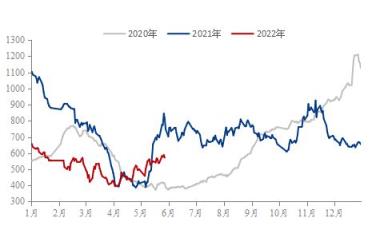 具體結合庫存數據來看,截止2022年5月27日,本周冷軋板卷社會庫存138.46萬噸,周環(huán)比是呈增庫趨勢,年同比來看,社會庫存數據同樣是遠高于同期的。其中年同比(公歷)增加19.25萬噸,年同比(農歷)增加21.07萬噸。具體來看,其中華中地區(qū)庫存是處于全國相對低位。其主要原因是:自春節(jié)后,華中地區(qū)價格持續(xù)處于全國中位水平,各大無縫厚壁鋼管廠家資源投放量并未有所增加,供需處于緊平衡狀態(tài)。而對比華東、華北這些區(qū)域來看,受防控升級影響,市場需求一定程度上受到抑制,而供給端并未有所變化,庫存壓力則隨之而來。