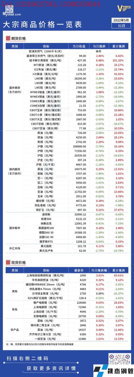 免責聲明:本網站(山東聊城晟杰無縫鋼管廠m.centurybiz.cn)刊載的“俄烏局勢丨大宗商品價格一覽表(5月31日)”等均源于網絡,版權歸原作者所有,且僅代表原作者觀點,本文所載信息僅供參考。轉載僅為學習與交流之目的,如無意中侵犯您的合法權益,請及時聯系刪除。本網站刊登此篇文章并不意味著本站贊同其觀點或證實其內容的真實性,我們不對其科學性、嚴肅性等作任何形式的保證。如果侵犯了您的版權,請盡快聯系我們予以撤銷,謝謝合作!