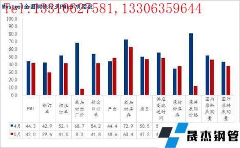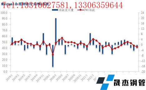 2022年5月份全國鋼鐵行業(yè)PMI為42.0%,環(huán)比回落2.3個百分點,連續(xù)三個月低于榮枯線。分指標(biāo)來看,本月新訂單、新出口訂單、積壓訂單、出廠價格、原料采購價指數(shù)均大幅回落,僅產(chǎn)出、原材料庫存指數(shù)小幅回升,但仍處于榮枯線下方,顯示了5月份國內(nèi)鋼鐵行業(yè)呈現(xiàn)供需兩弱的低迷態(tài)勢運行。具體來看,5月份國內(nèi)疫情仍呈多點散發(fā)態(tài)勢,繼續(xù)拖累終端需求釋放,同時宏觀經(jīng)濟數(shù)據(jù)顯示投資消費信心不足、國內(nèi)經(jīng)濟面臨較大下行壓力,導(dǎo)致市場悲觀情緒蔓延,國內(nèi)厚壁無縫鋼管價格持續(xù)下行,無縫厚壁鋼管廠家生產(chǎn)盈利快速收窄,尤其是短流程無縫厚壁鋼管廠家面臨全線虧損,無縫厚壁鋼管廠家供給釋放受到抑制。面對即將到來的6月份,國內(nèi)鋼價能否止跌企穩(wěn),下面筆者從PMI各項指數(shù)進行分析解讀。