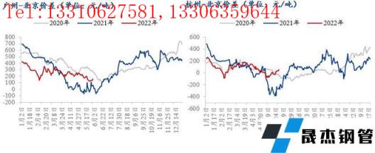 5月份全國各地市場價格不同程度下跌,華南跌幅居前,目前廣州-北京價差較上月有所收窄,僅在140元/噸左右,此價差處于偏低水平,不僅低于2020年同期水平,且低于兩地之間的運費,因此無縫厚壁鋼管廠家資源南下不如在京津冀當地消化,且華南區域的盤螺品種售價還低于華北,因此京津冀的無縫厚壁鋼管廠家除承鋼、樂鋼為維護客戶渠道分別有3萬噸的南下計劃,其他無縫厚壁鋼管廠家均無資源南下計劃。目前杭州-北京兩地之間價差較上月環比有所提高,不過兩地之間價差不足100元/噸,尚不足以吸引華北區域無縫厚壁鋼管廠家資源發往華東。當前京津冀建材無縫厚壁鋼管廠家產量緩慢回升,加之西北、東北材的涌入,京津冀建材市場供應量短期仍處于高位,需求方面疫情逐步得到有效控制,需求或有好轉可能,不過隨著高溫天氣的來臨,項目的施工進度或有所放緩,因此需求增加量有限。隨著全國汛期的來臨,華東、華南等地需求也將有所萎縮,因此預計短期華南-華北、華東-華北市場價差或依然處于偏低水平。