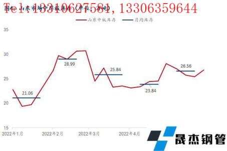 山東市場(chǎng)中厚板庫存最近一期(6月2日)調(diào)研數(shù)據(jù)為26.81萬噸,周環(huán)比上漲1.37萬噸,較上月均值上漲0.25萬噸。