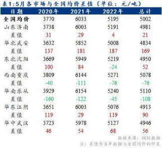 據(jù)鋼聯(lián)數(shù)據(jù)對(duì)各區(qū)域主流市場(chǎng)及全國均價(jià)的5月價(jià)差數(shù)據(jù)分析:山東、東北今年價(jià)格較全國平均水平有所抬升,華北、華南、華東、華中較全國平均水平有所下降;