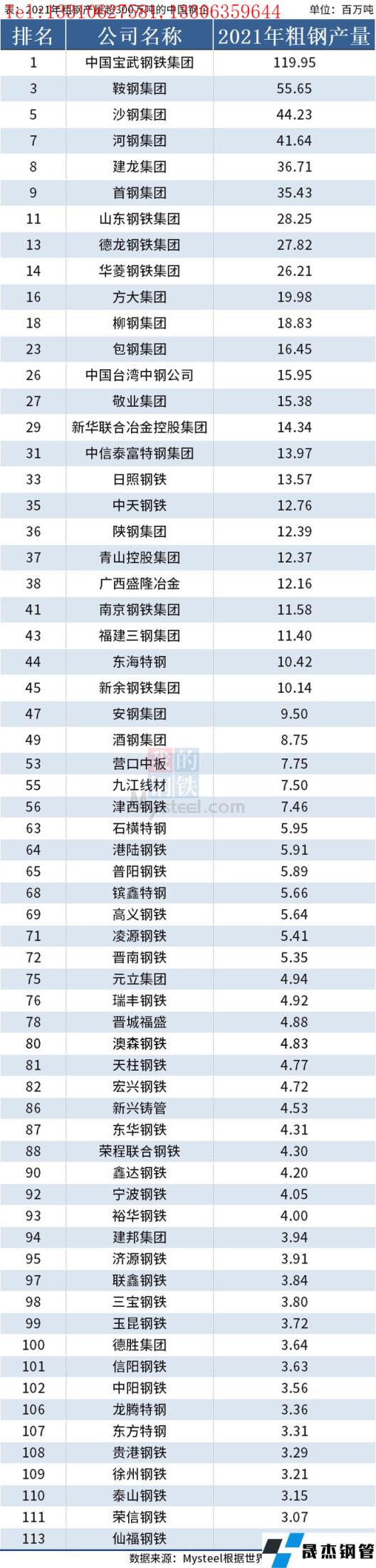 免責聲明:本網站(山東聊城晟杰無縫鋼管廠m.centurybiz.cn)刊載的“2021年中國64家重點鋼企粗鋼產量排名”等均源于網絡,版權歸原作者所有,且僅代表原作者觀點,本文所載信息僅供參考。轉載僅為學習與交流之目的,如無意中侵犯您的合法權益,請及時聯系刪除。本網站刊登此篇文章并不意味著本站贊同其觀點或證實其內容的真實性,我們不對其科學性、嚴肅性等作任何形式的保證。如果侵犯了您的版權,請盡快聯系我們予以撤銷,謝謝合作!