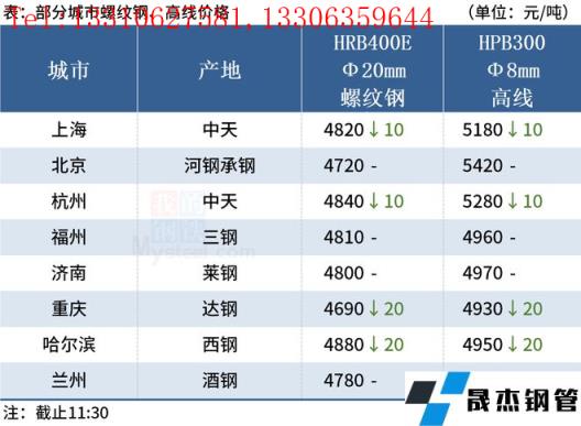 ◎濟南:10日早盤建材市場價格暫穩。萊鋼螺紋4730,永鋒、石橫螺紋4730,永鋒、石橫盤螺4970。(單位:元/噸)