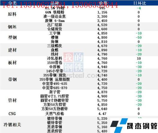 表:6月10日唐山鋼市主要品種價(jià)格一覽(單位:元/噸)