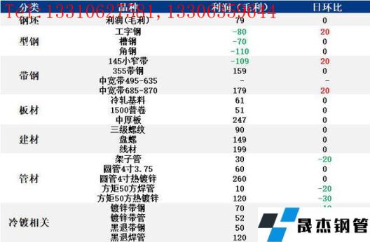 表:6月10日唐山鋼市主要品種利潤(rùn)一覽(單位:元/噸)
