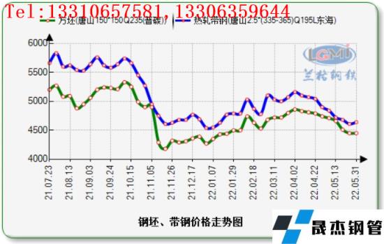 據云商平臺監測數據顯示:截至2022年5月31日,唐山鋼坯資源價格4450元,與上月同期相比下調290元;唐山熱軋帶鋼(2.5*355mm)市場價格4690元比上月同期下跌270元。5月份,受國內帶鋼價格大幅下行影響,市場信心恢復緩慢,操作謹慎觀望,市場供大于求矛盾難以緩解,整體交投氛圍平平。月底焦炭第四輪提降落地,成本端支撐減弱,高位信心不足。355系窄帶價格本月持續下行趨勢,下游拿貨按需采購,因部分地區疫情反復,廠商操作不積極,交投低迷。相比北方地區,南方商貿成交多集中于低價資源,受季節性影響,終端接單較少,補庫需求寥寥。近日中央穩經濟會議的召開對市場信心形成提振,但供需矛盾的變化仍是市場關注的焦點,綜合預計6月份帶鋼或將延續震蕩整理。