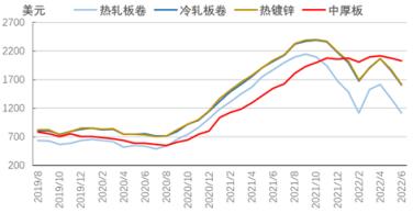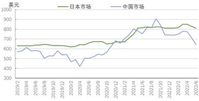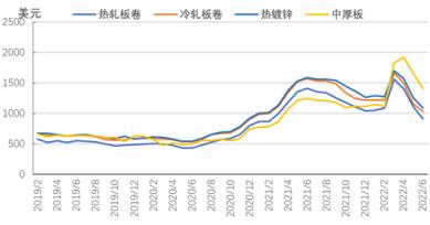 圖5 2019-2022年亞洲扁平材市場價格走勢圖