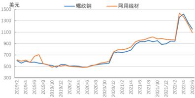 圖6 2019-2022年亞洲螺紋鋼價格走勢圖