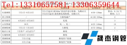 6月份無縫鋼管廠家出廠價格大幅下調。無縫鋼管廠家盈利情況仍不理想,整體厚壁鋼管出庫困難,無縫鋼管廠家多以虧損為主,在資金壓力較大情況下,有意打壓原料價格,無縫鋼管廠家對原料的采購積極性一般。近期無縫鋼管廠家考慮到廠庫居高不下,成本明顯虧損的情況下,各無縫鋼管廠家紛紛安排檢修減產,具體檢修情況如下: