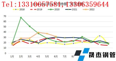 圖3:2018-2022年江蘇地區優特無縫鋼管廠家庫存走勢圖