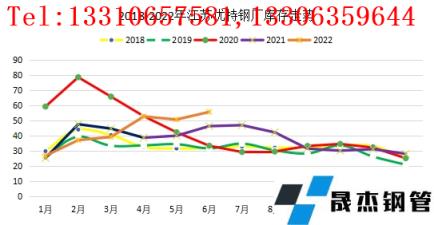 圖4:2018-2022年山東地區優特無縫鋼管廠家庫存走勢圖